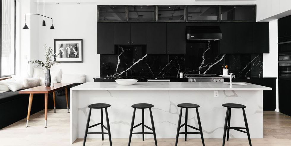 The enduring appeal of black and white lies in its sleek, contemporary vibe. Use black for lower cabinets to ground the design and white for upper cabinets to create an airy, spacious feel.