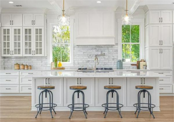 Look for the vast majority of those doors to be painted. Paint remains the leader in cabinet finishes, but wood looks and stains are remaining strong. And white is still the king in kitchens, accounting for a third of all kitchens.